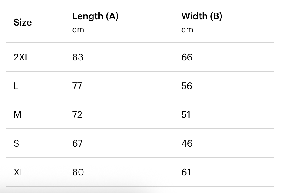 Size range: S-XXL